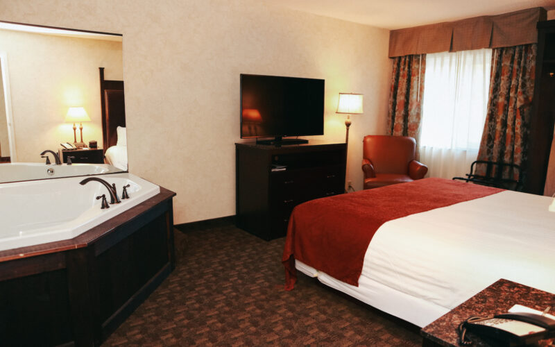 - In room whirlpool tub conveniently adjacent to the bed